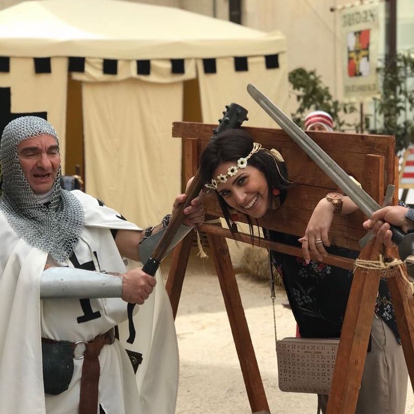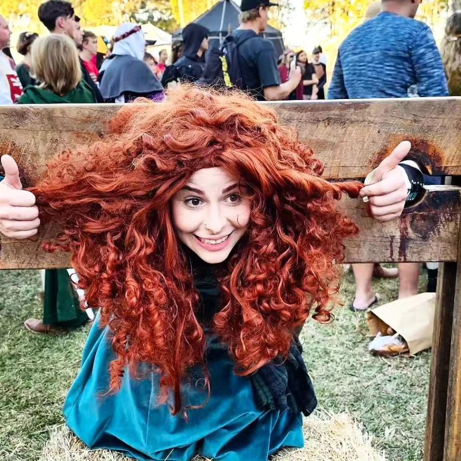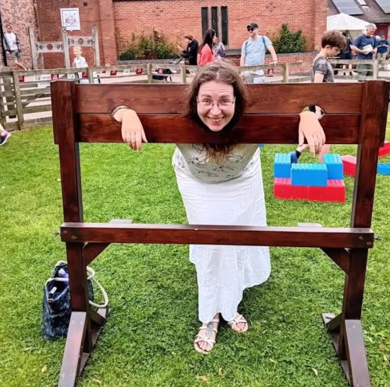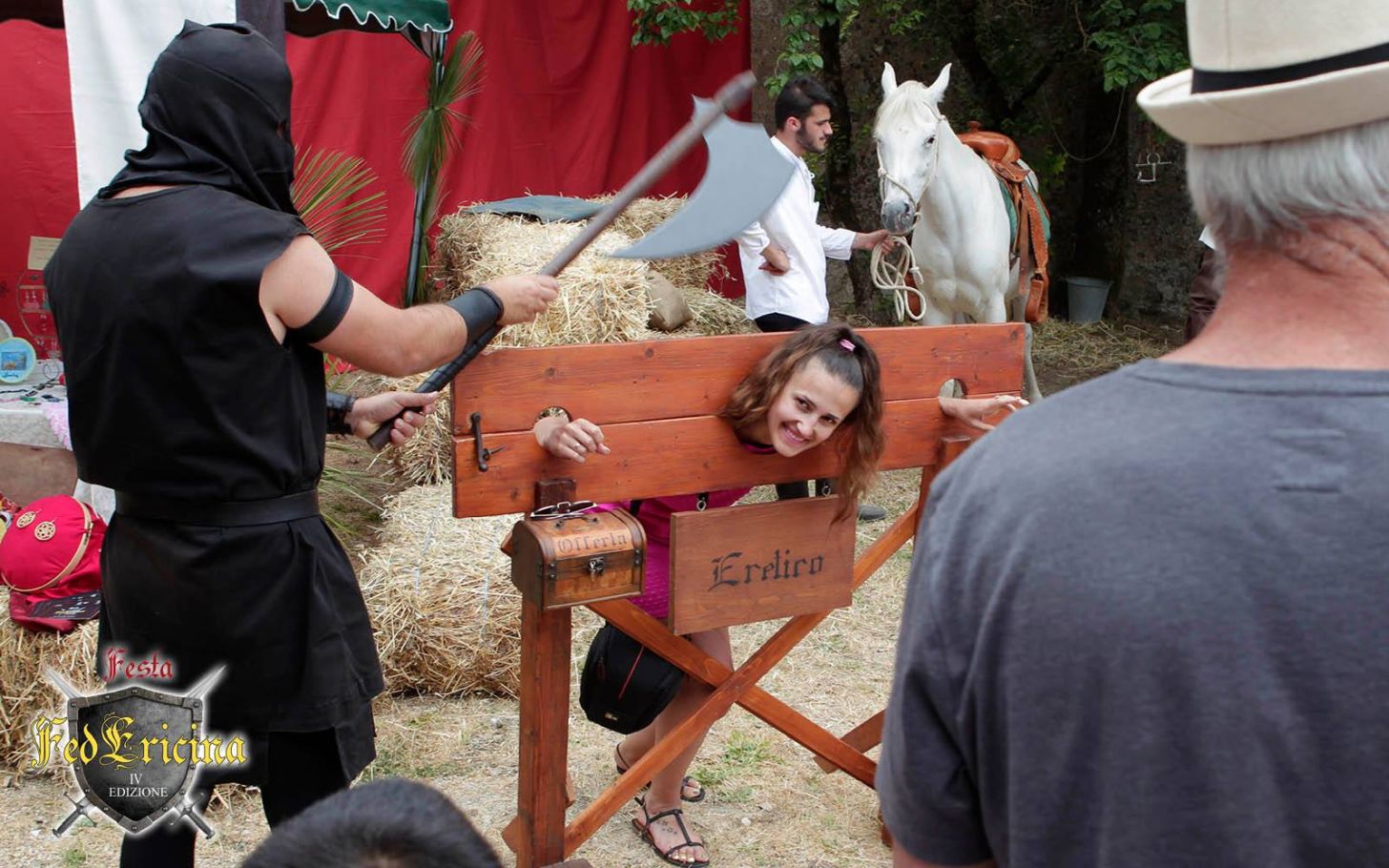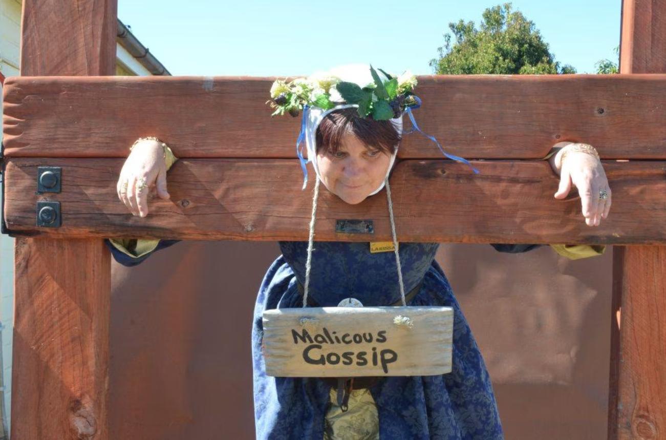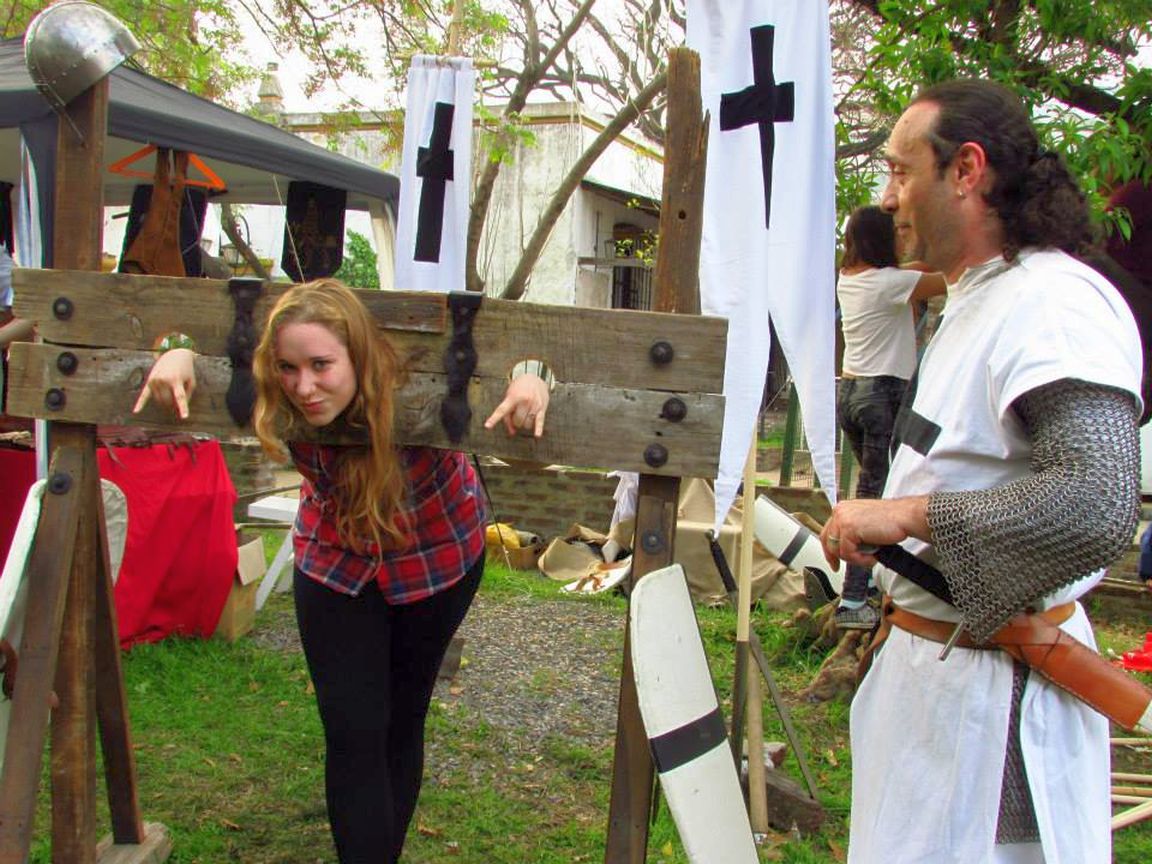 Another French fair. Stuck in a pillory and your hair is a mess? Then you need a visiting medieval hairdresser. A few expert tweaks and she's looking as chic as ever. Voila, c'est magnifique.
