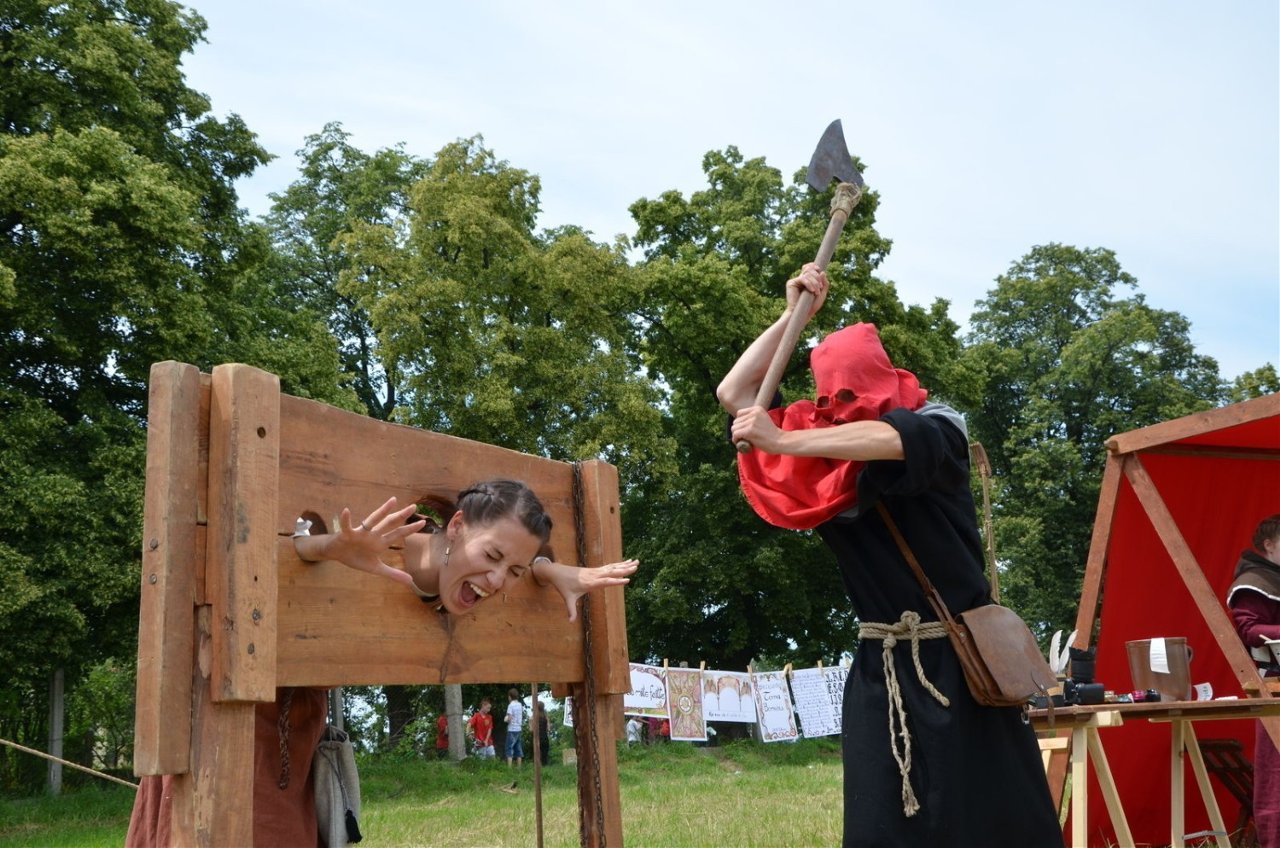 Goralska Agencja Eventowa is a Polish re-enactment group which performs at fairs and other venues. In some of the pictures, the victims are having their legs shaved with an axe. Yes, that's a new one on me too. Perhaps Polish women have particularly hairy legs. Those crazy Poles also have a spanking machine.