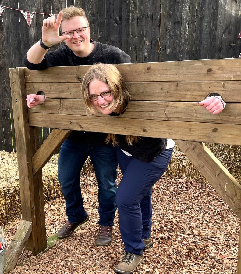 The Kinsmen Activity Centre is near York, UK. Whoever scores lowest at axe throwing ends up in the pillory. No, I haven't made that up. That's the rules.