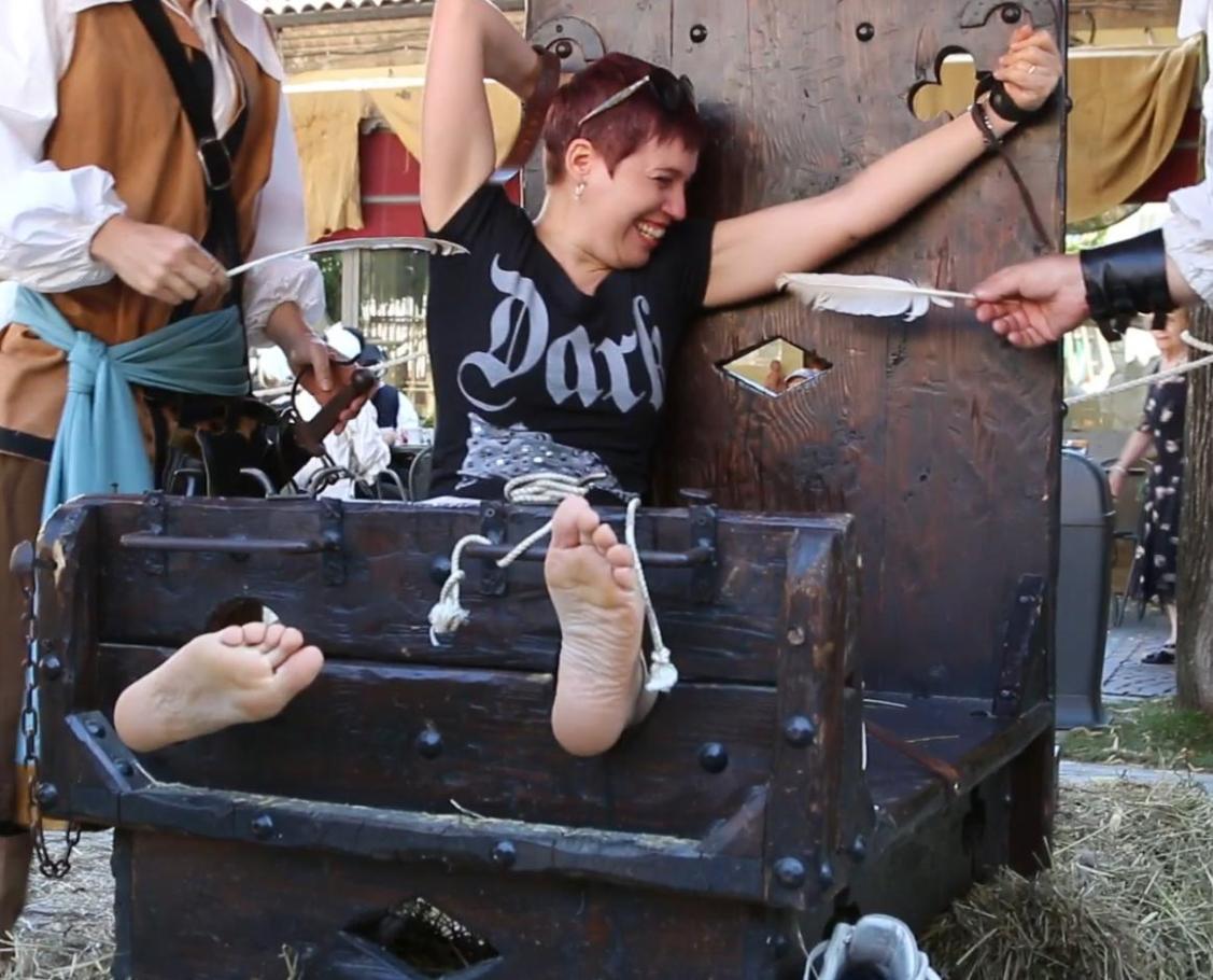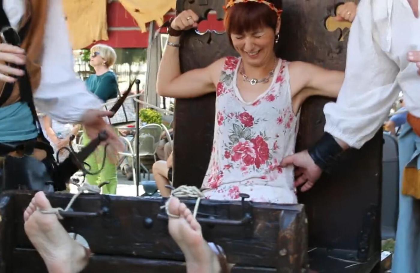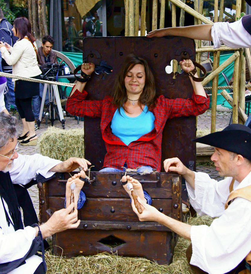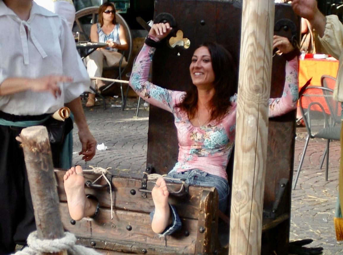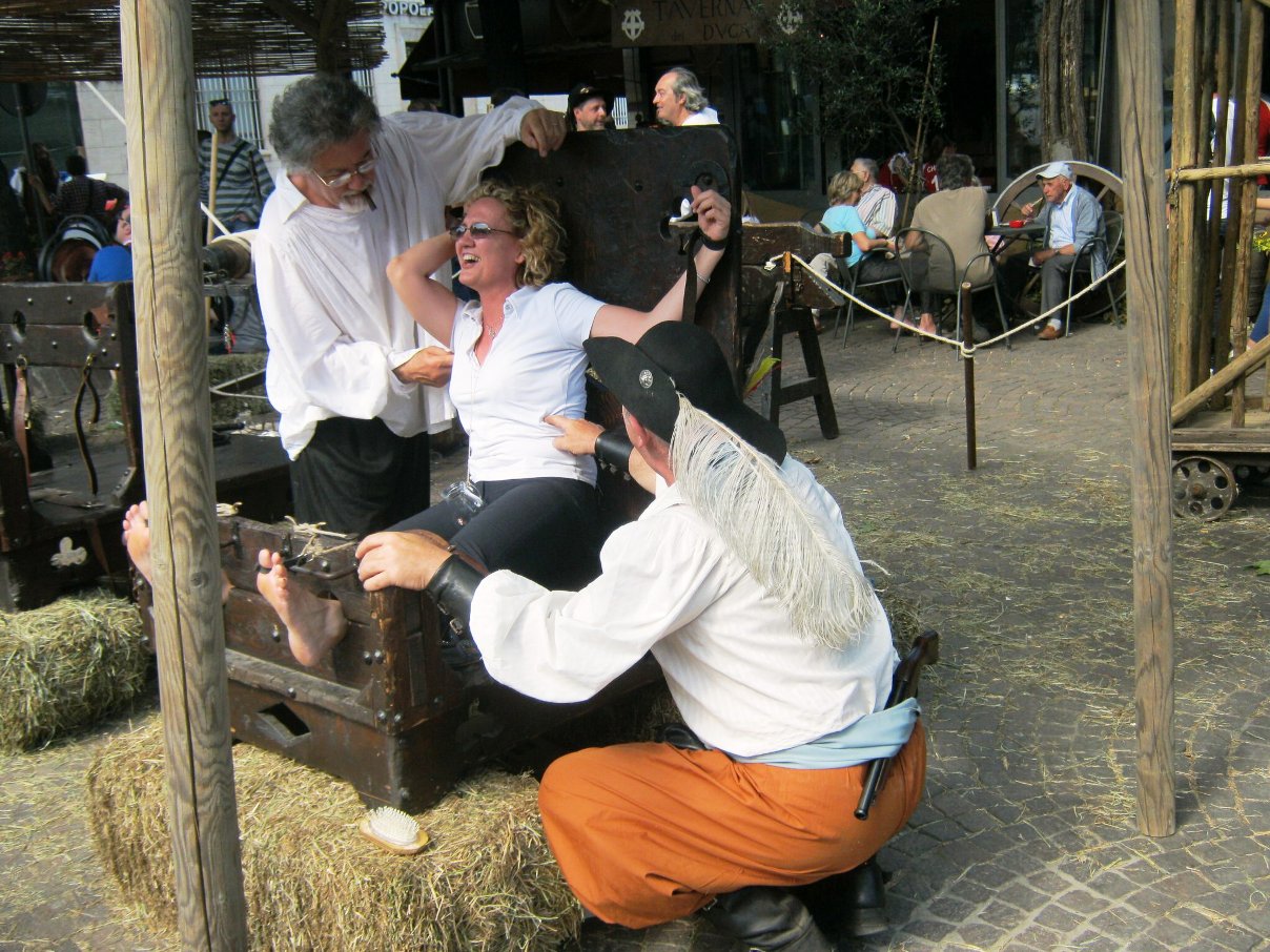 These are pictures taken at a faire at Canelli in Italy. Our Italian friends have their own methods of dealing with criminals. This is what happens to people who try to sneak in without paying.