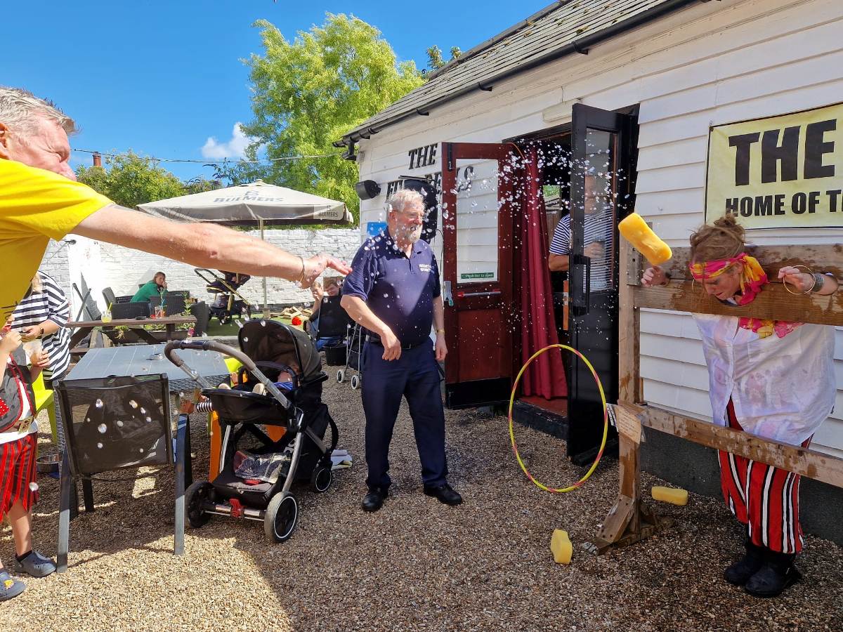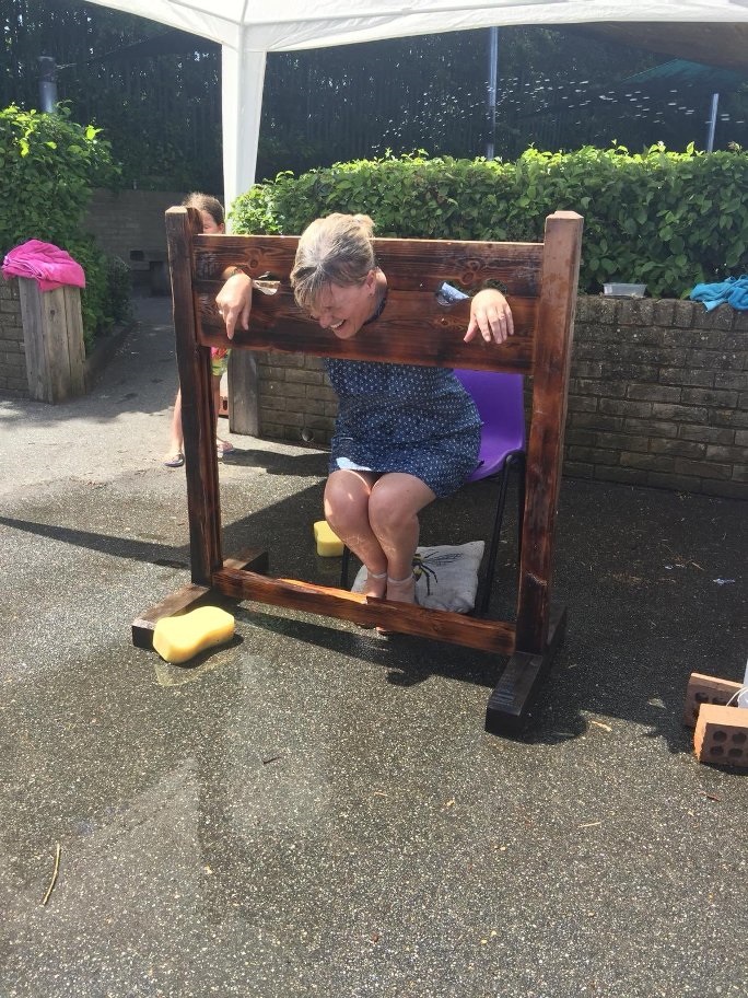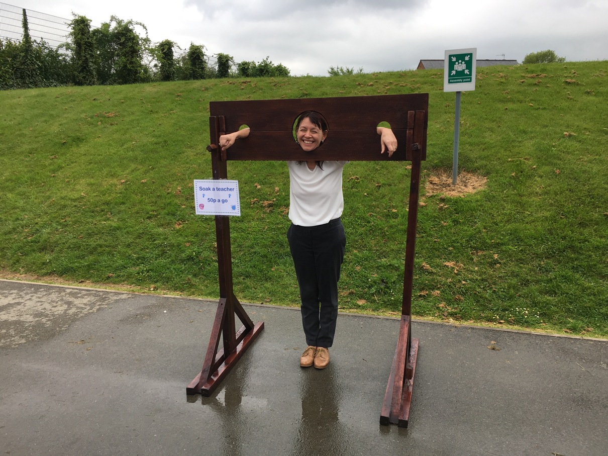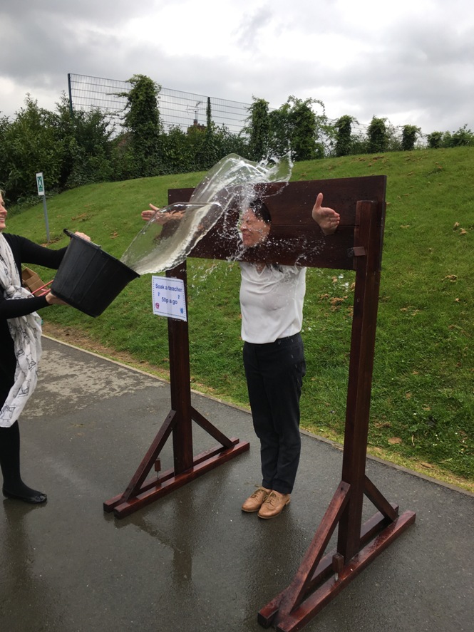 Teachers at Beaminster School getting the wet sponge treatment.