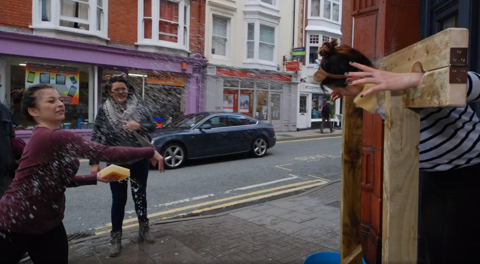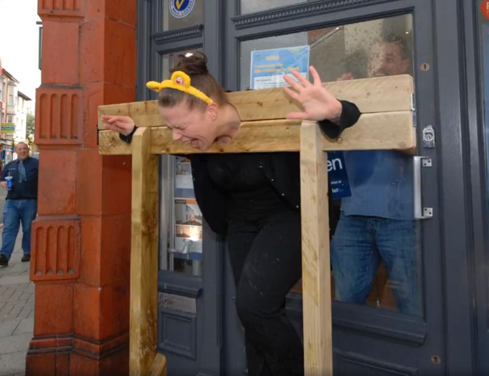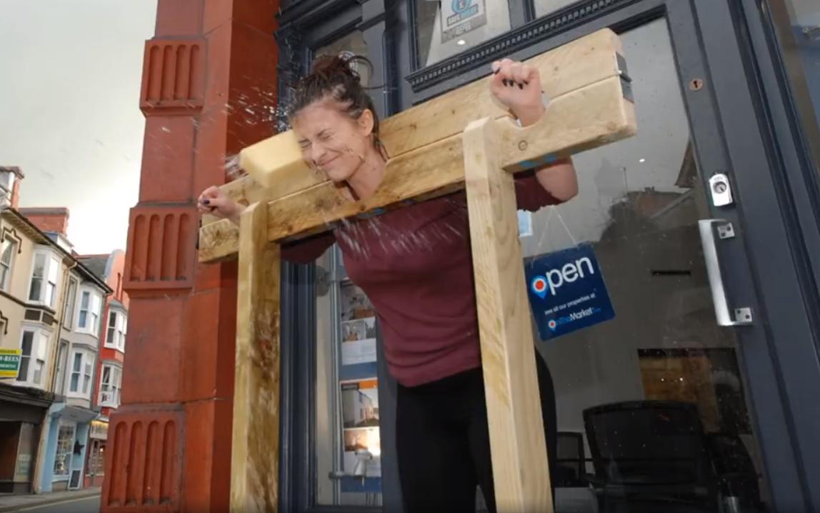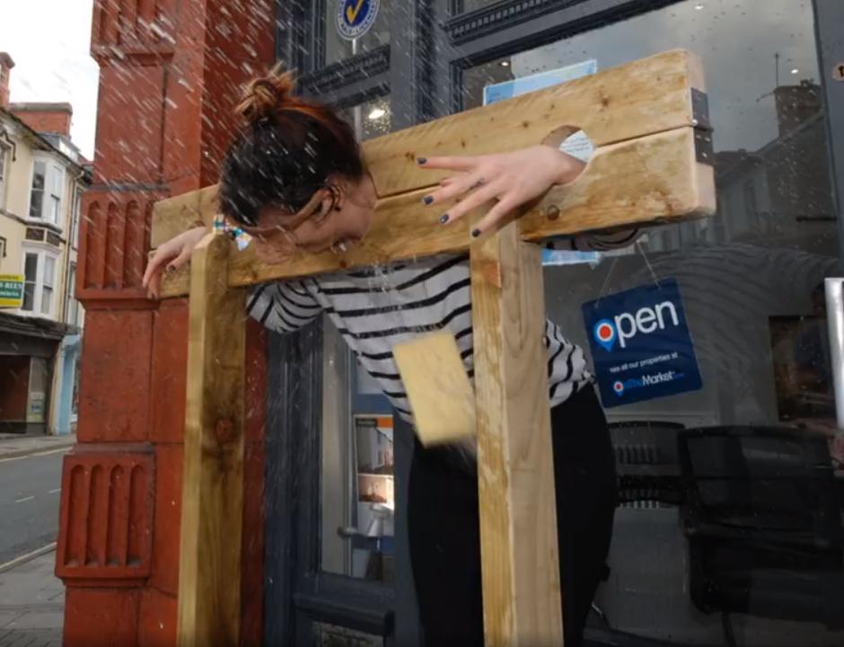 Estate agents are always a popular target for wet sponges. Here we see the staff at Alexanders Estate Agency raising funds for BBC Children in Need in Aberystwyth, Wales.