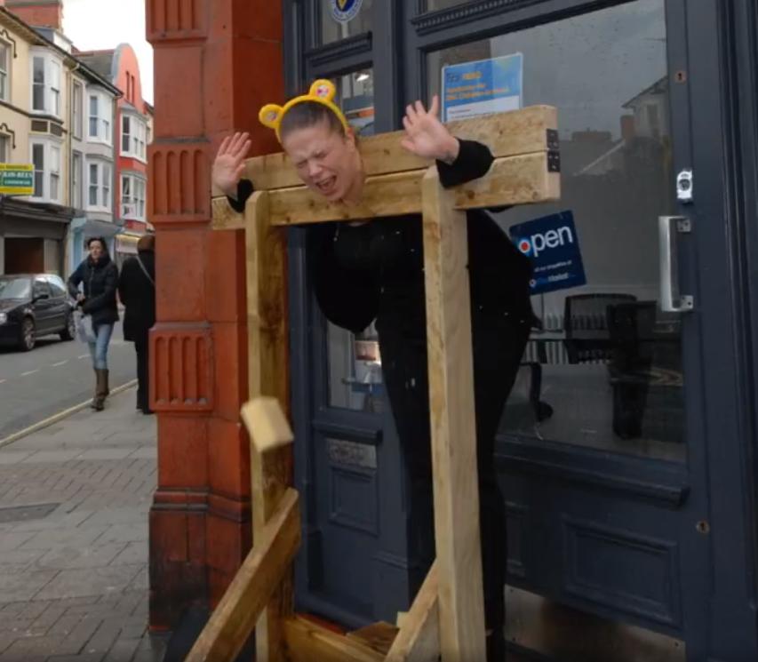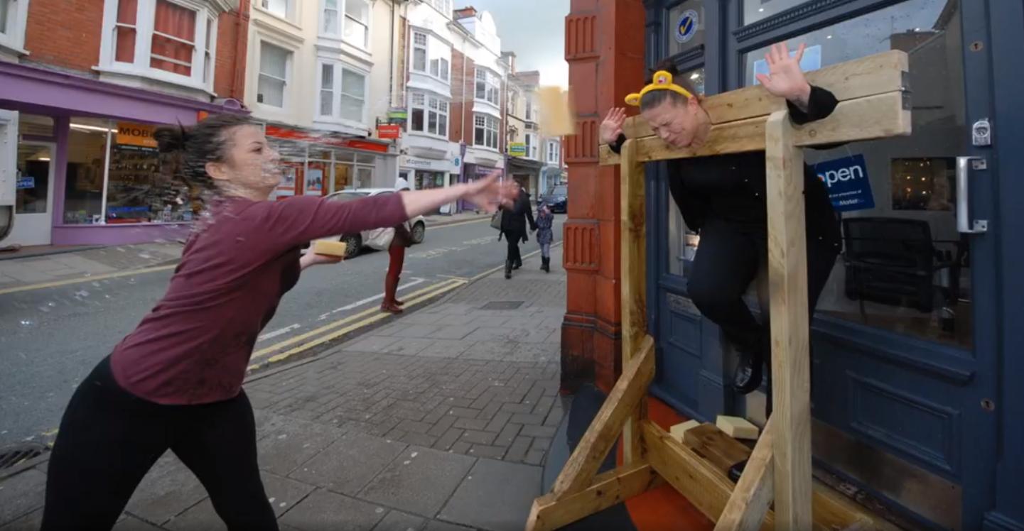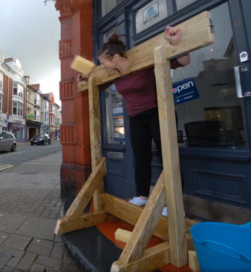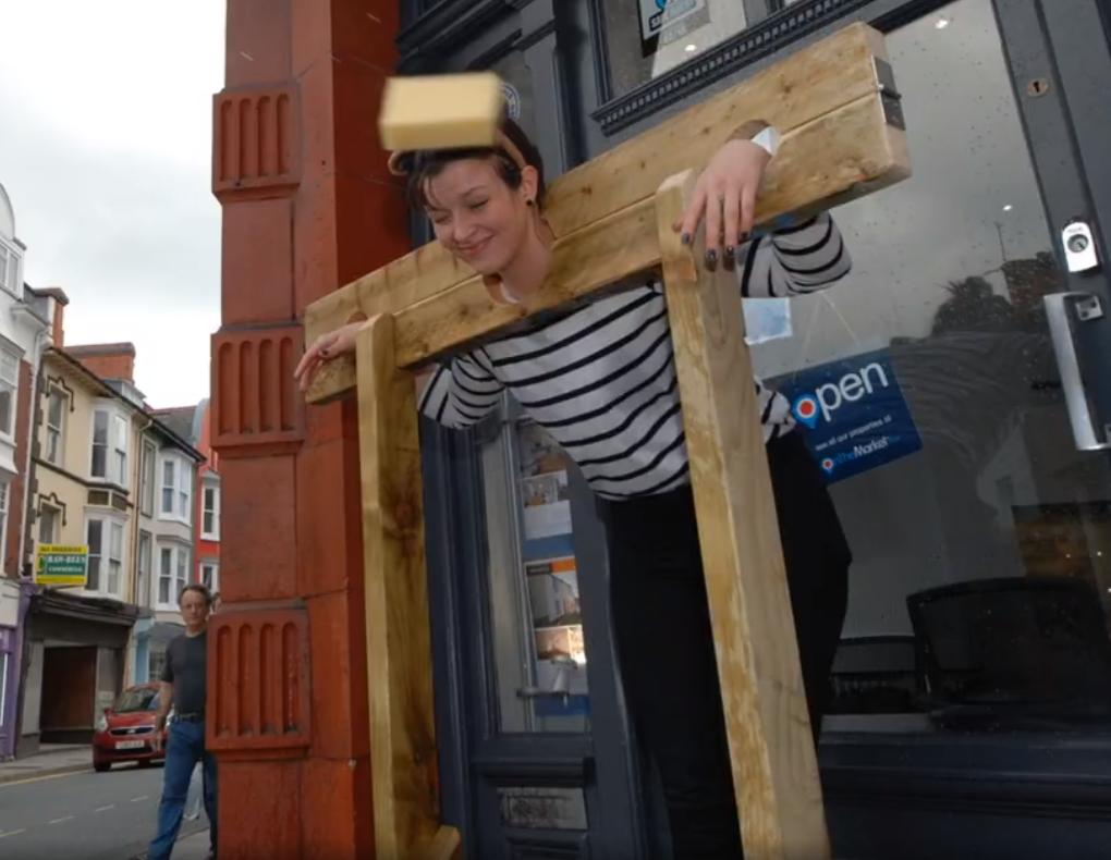 Estate agents are always a popular target for wet sponges. Here we see the staff at Alexanders Estate Agency raising funds for BBC Children in Need in Aberystwyth, Wales.